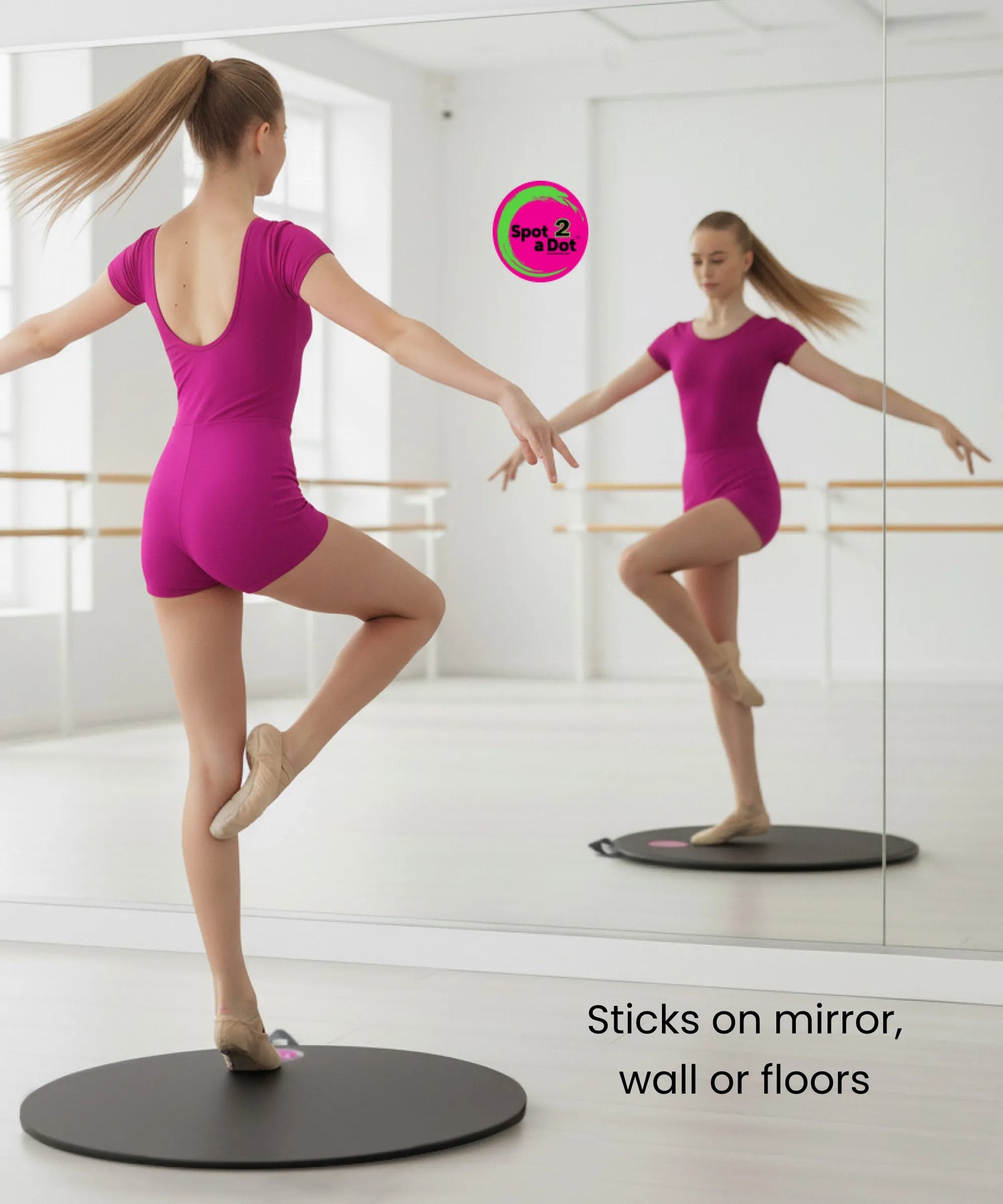 The perfect tool for focusing on those Dancing Turns, with Spot2a Dot Spotting Sticker you can practices and use the stickers as reference when you turn , so you can follow that DOT and try to keep that balance on the dance turns.